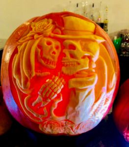 This pumpkin proves that not even death, or being two-dimensional carvings on the side of a seasonable vegetable, can get in the way of true love.